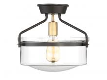 Change up your ceiling lighting with this understated, stylish 1-light semi-flush mount. Clear glass shade and Natural Brass finish. 11" in height and 13.25" in width.