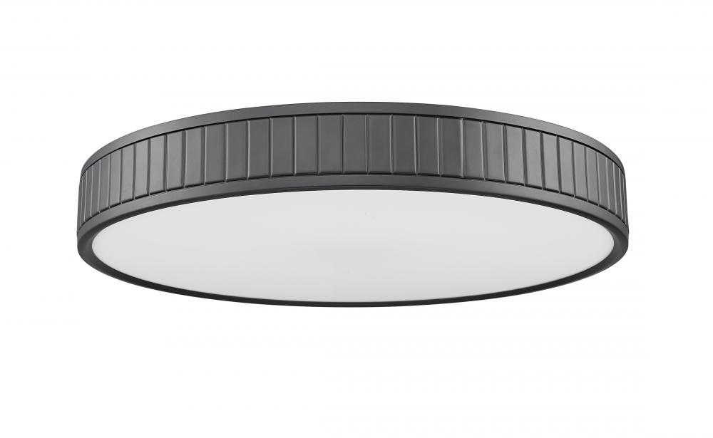 Add versatility with a one-light flush mount ceiling light creating a sleek look with a bold matte black finish steel ring canopy. Vertical slats offer textural effects in a frame nestling a frosted acrylic diffuser, sending optional and changeable white-color values to light up a modern kitchen, dining room, or foyer.