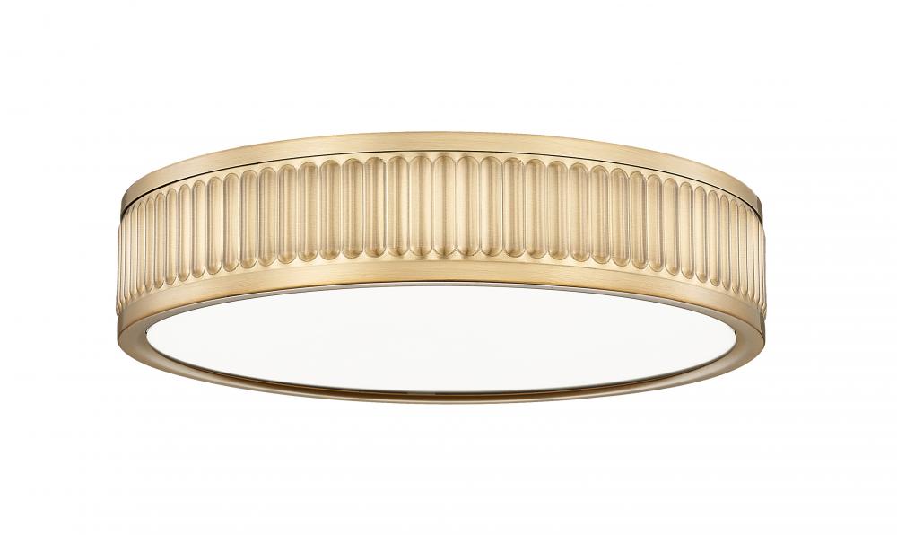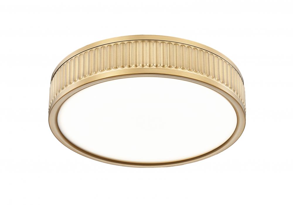 Clean and simple, this modern one-light flush mount ceiling light is enhanced with a chic modern gold finish. Its ribbed framework creates a sense of texture and movement, while an integrated LED light source is an energy efficient choice in your bedroom or living area.