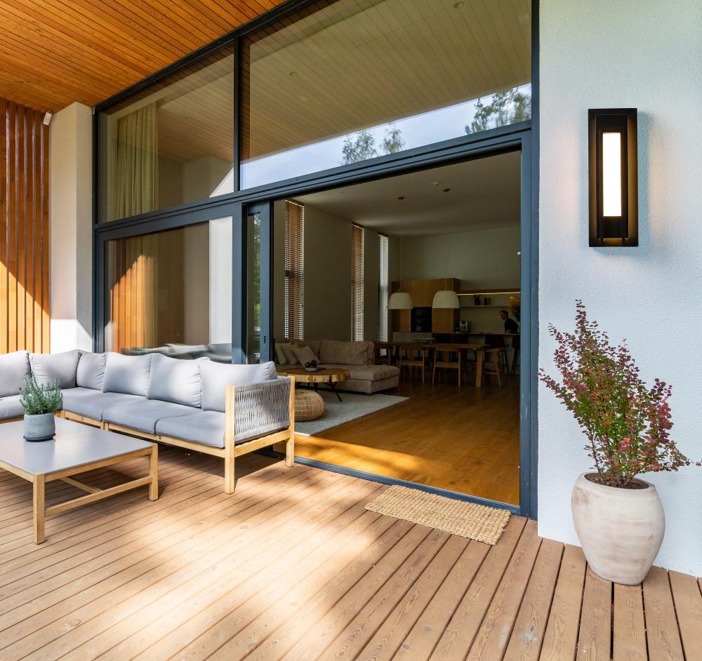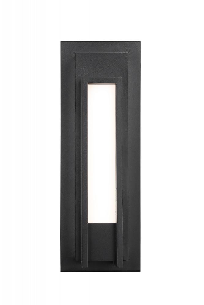 Linear elements present a dose of geometric energy and pure class as this one-light outdoor wall sconce from the Keaton collection raises the level of elegance. Update an exterior structure with this light built of black and white aluminum with overlapping rectangular panels. Energy-efficient LED lighting offers savings and extends the life of a chic fixture.