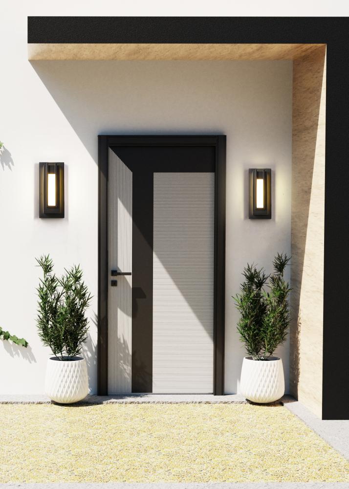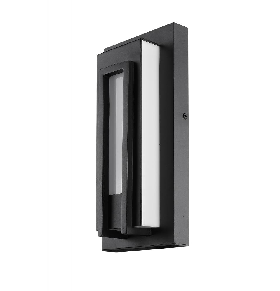 This outdoor wall sconce from the Keaton collection adds a striking geometric vibe and dimensionality to any structure. Update a contemporary exterior structure with this light built of black and white aluminum with overlapping rectangular panels. Energy-efficient LED lighting offers savings and extends the life of a chic fixture.