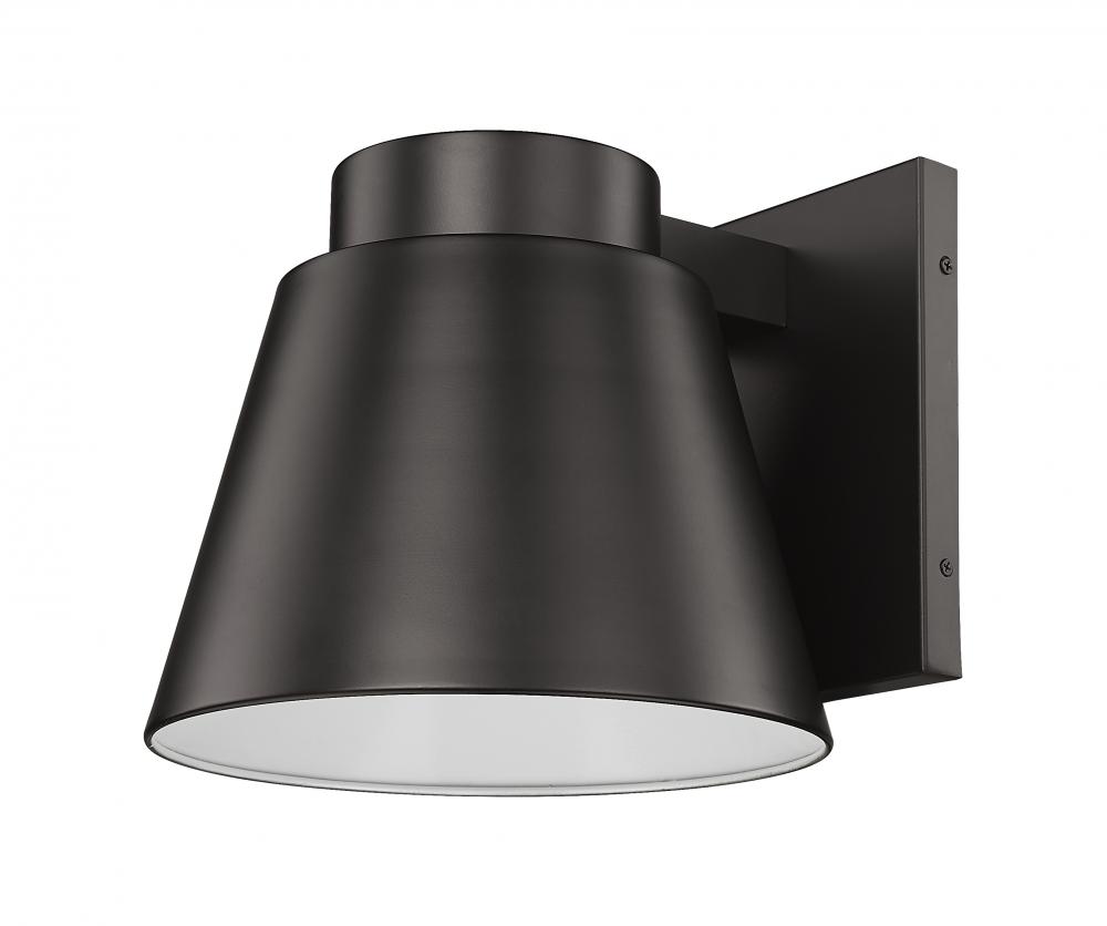 Embrace simplicity in design to offer complementary modern repurposing of a classic village theme. From the Asher collection, this one-light outdoor wall sconce features construction of glam-inspired oil rubbed bronze aluminum with a sandblast effect on its conical shade. Perfect for residential structures, this sconce aligns with updated custom aesthetics.