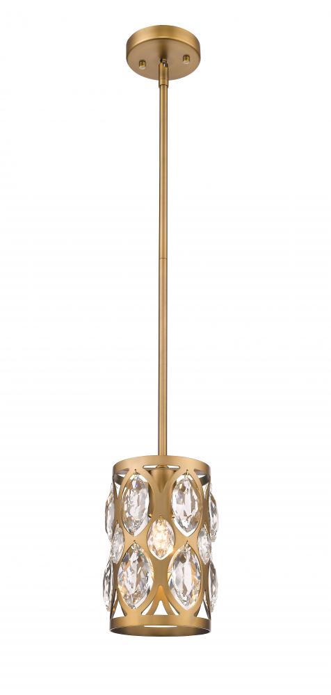Radiate warmth through the crystal accents on this hanging ceiling light. In a rich heirloom brass hue, this lamp is full of vintage-inspired details and clean lines.