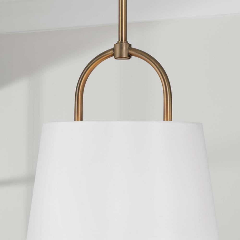 16"W x 21"H 1-Light Pendant in Aged Brass with White Fabric Shade