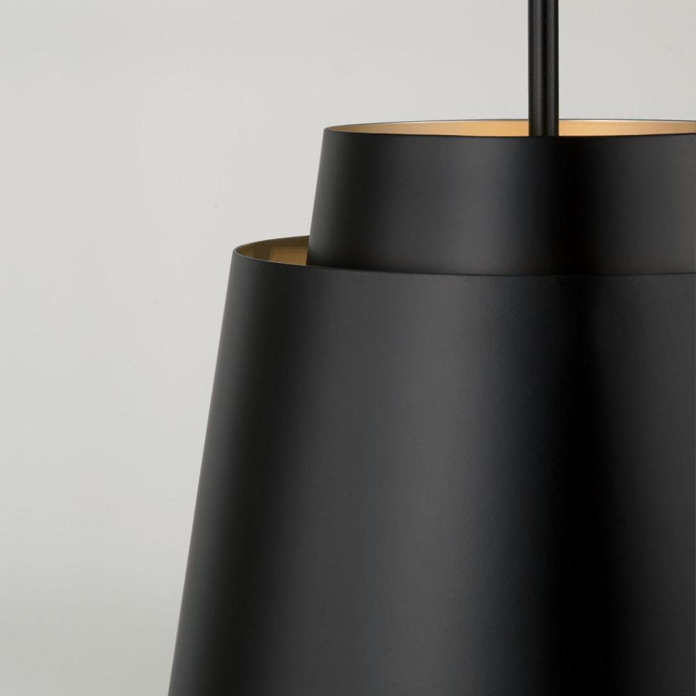 Tapered and concise, the Pratt Pendant brings sophisticated style to any space. Finished in Matte Black, the tiered metal shade creates a sleek aesthetic, while the inner Soft Gold finish invites intriguing dimension.