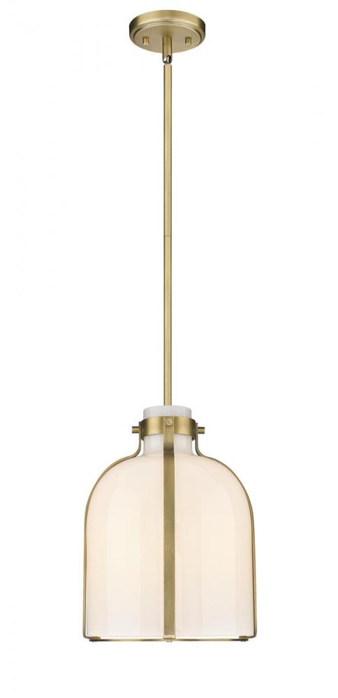 This one-light chandelier will invite modern farmhouse appeal to your dining room, kitchen island, or breakfast bar. It features a steel construction with a rubbed brass finish and a white opal glass shade to diffuse the light. The crisp and clean design of this chandelier makes it a focal point in your space.