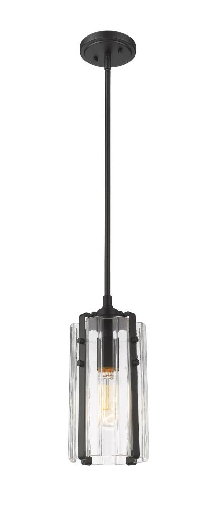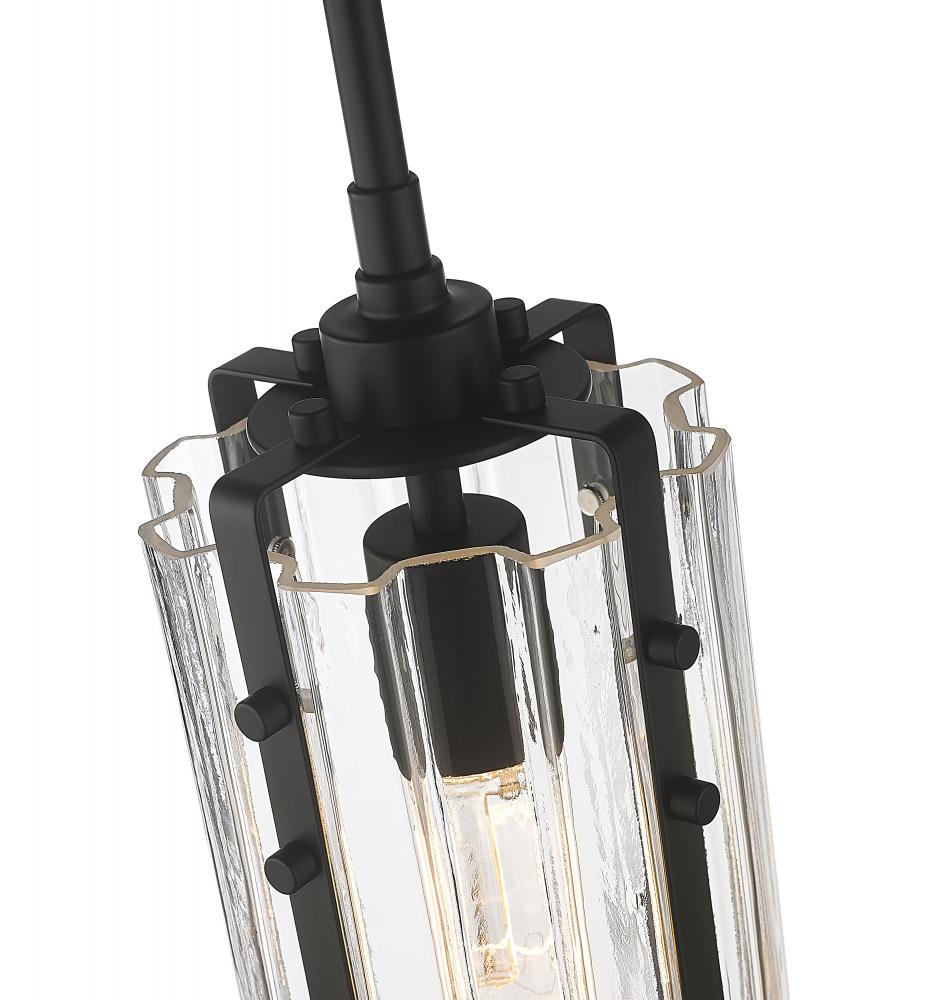 Elevate a sophisticated, classically designed kitchen island or a home bar into a swanky, minimalist space with this transitional one-light mini pendant. An old-world industrial feel carries through in the hand blown-like clear glass shade as a matte black steel frame and bracket create an Arts and Crafts-inspired expression that keeps a timeless, understated interior.