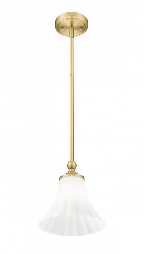 With an abundance of elegance, minimalism takes a turn to add dimmable lighting to a variety of living venues. A classic design begins with warm modern gold metal framing dressed up with charming detail youll love. A fluted matte opal glass shade infuses a romantic aesthetic, perfect for solo use in foyers and living rooms, or installed in rows to highlight horizontal settings including kitchen islands and bar spaces.
