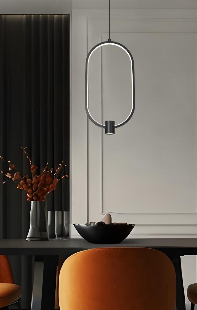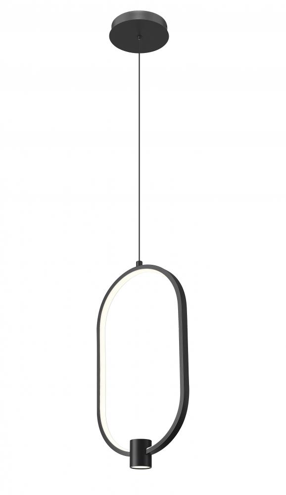 Creating a refined silhouette, this charming LED pendant offers an updated design with a geometric oval silhouette. Matte black aluminum fashions a sophisticated and yet playful look with open metalwork offering an airy feel. LED lighting is dimmable, adding the pleasure of variable illumination levels.