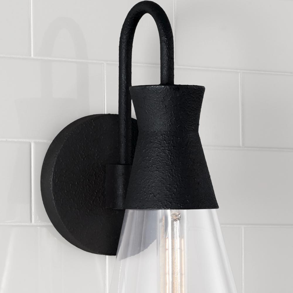 7.25"W x 16.25"H 1-Light Sconce in Textured Black with Clear Glass