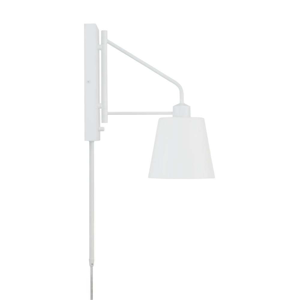 Spotlight distinct style with the Alden Sconce. The White finish offers a sleek contrast, and the crisp, tapered metal shade swings from side to side and includes a dimmer switch bringing modern task lighting where you need it most. This versatile fixture includes a 12 cord cover and plug-in option.