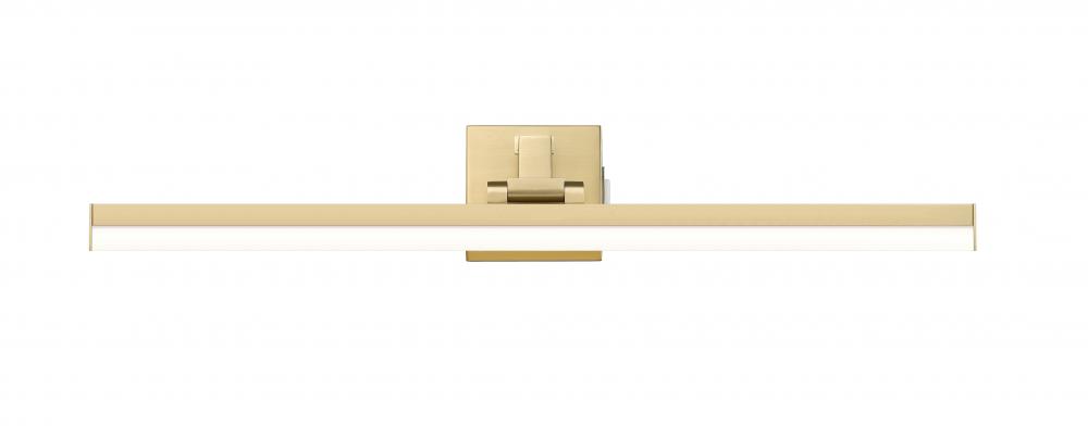 This elegant one-light vanity light is a superb choice for an industrial or modern bath space. Sculptural elements maintain symmetry and clean lines in a fixture with a modern gold finish aluminum frame and a frosted plastic diffuser, emitting dimmable lighting with options for perfecting the level of ideal white color.