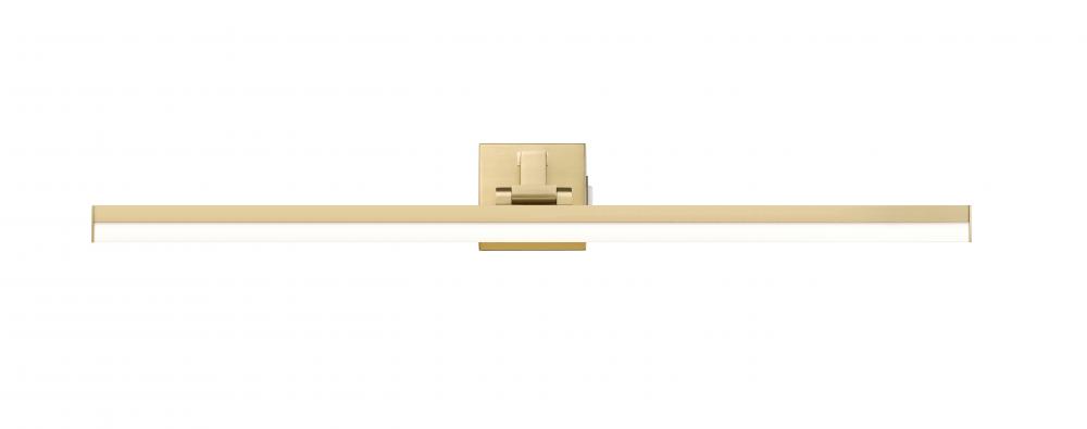 Delivering a contemporary and transitional mix to bath space lighting, this one-light vanity light features sleek accents suggestive of industrial attitude. Sculptural elements maintain symmetry and clean lines in a fixture with a warm modern gold finish aluminum frame and a frosted plastic diffuser, emitting dimmable lighting with options for perfecting the level of ideal white color.