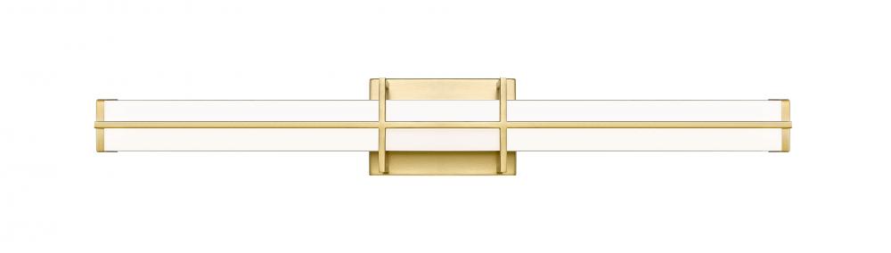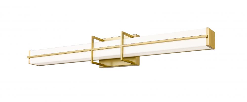 Simplicity sets the tone for the Harrison dimmable LED bath light. Its long, linear profile is perfect over your sink and counter, offering bright, even illumination with selectable color temperature to create the perfect ambiance for you. A rectangular diffuser is frosted for even illumination while a stylish bracket design sports a warm modern gold finish for a crisp, versatile look in your bathroom.