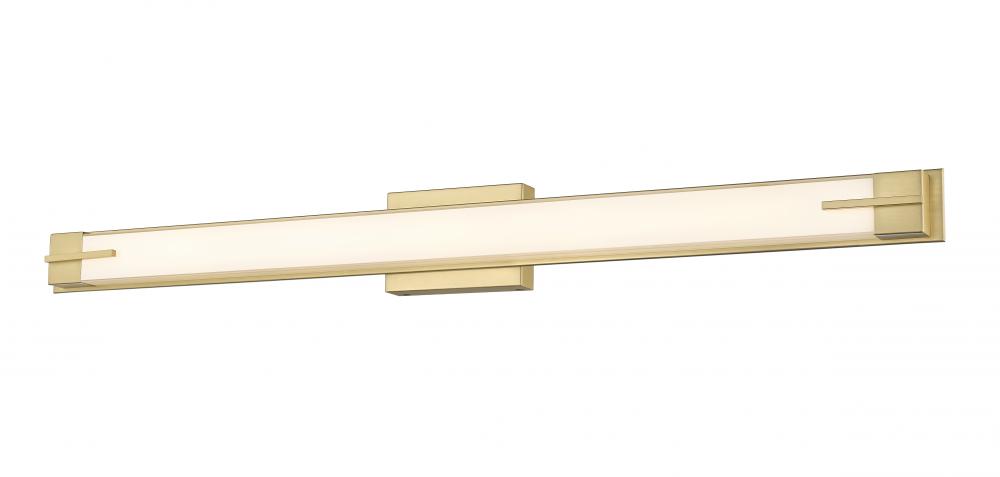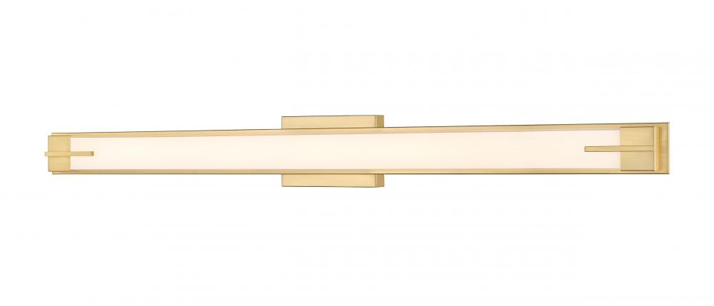 Set the tone in a modern bath with this contemporary LED vanity fixture. Its a streamlined silhouette defined with a sophisticated modern gold finish, offering a warm ambiance and elegance. Bracket details add character, while a silk white glass diffuser creates the bright, even illumination you like for morning and evening grooming and beauty rituals.