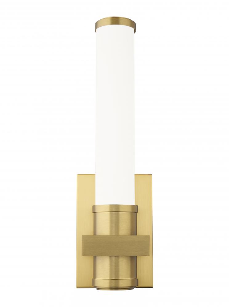 Instill warmth and sophistication with the chic modern gold finish featured on this contemporary LED wall sconce. It pairs a square cuff and cylindrical opal glass shade to create a clean, crisp presentation in your hall, living area, or bath. A dimmable LED light source is perfect for energy efficiency in your eco-friendly modern home.