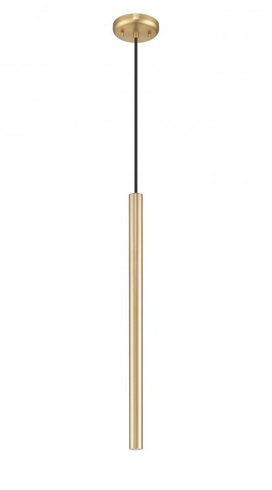 The warmth of a modern gold finish highlights this contemporary one-light LED pendant. An energy efficient choice, its ultra-slim cylindrical silhouette brings a sense of precision, perfect at the bedside or in your living and dining room.