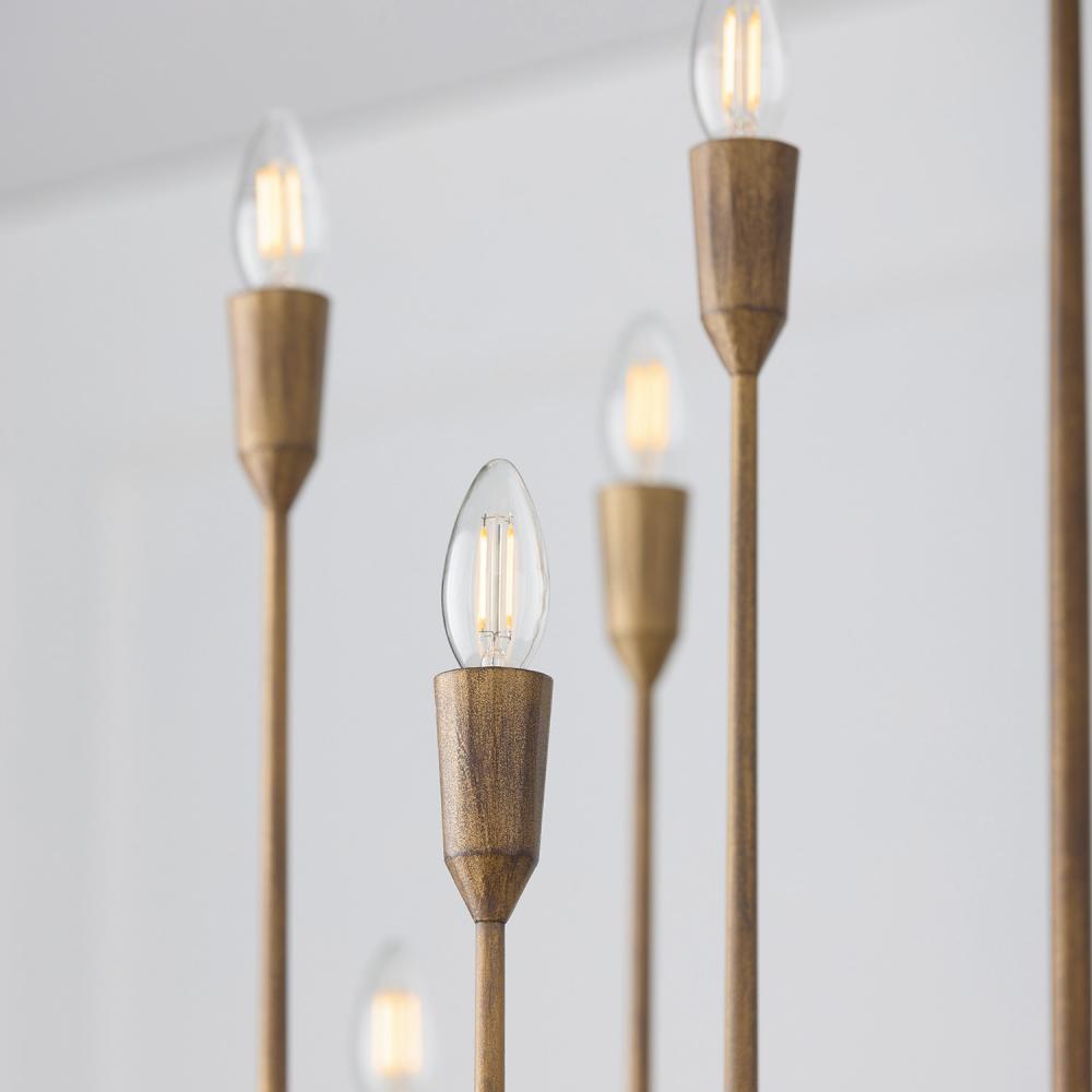 BULBS: Designed to be dimmable and LED/CFL/Incandescent bulb compatible, this fixture uses 12 - 60 Watt (max) E12 Candelabra base bulbs (not included). Shown with clear B10 bulbs.