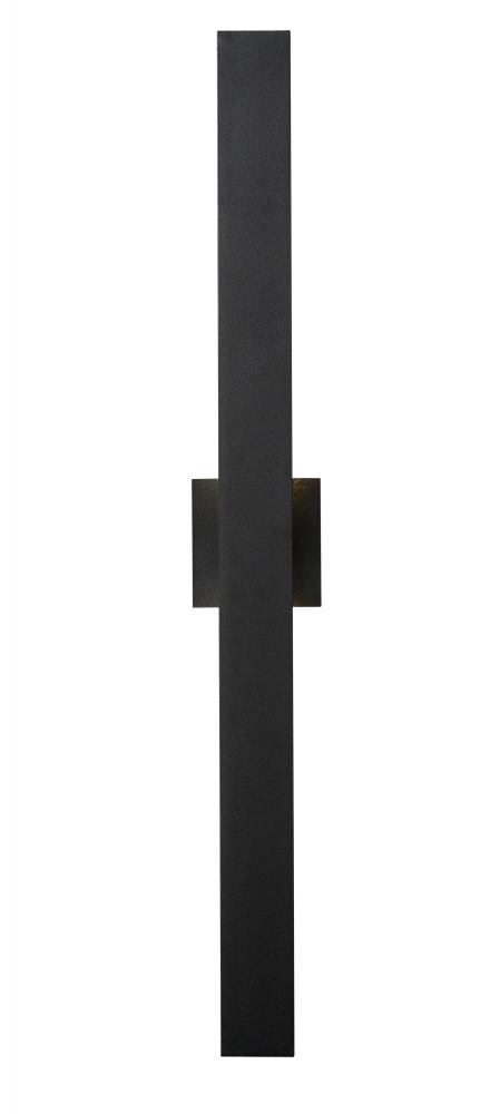 Linear design standards adopt an iconic simplicity with contemporary verve as this two-light outdoor wall sconce offers a visual impact to any space. This fixture from the Edge collection offers construction of bold black finish aluminum with a sandblast glass shade. Create a minimalist approach to ambient and accent outdoor lighting.