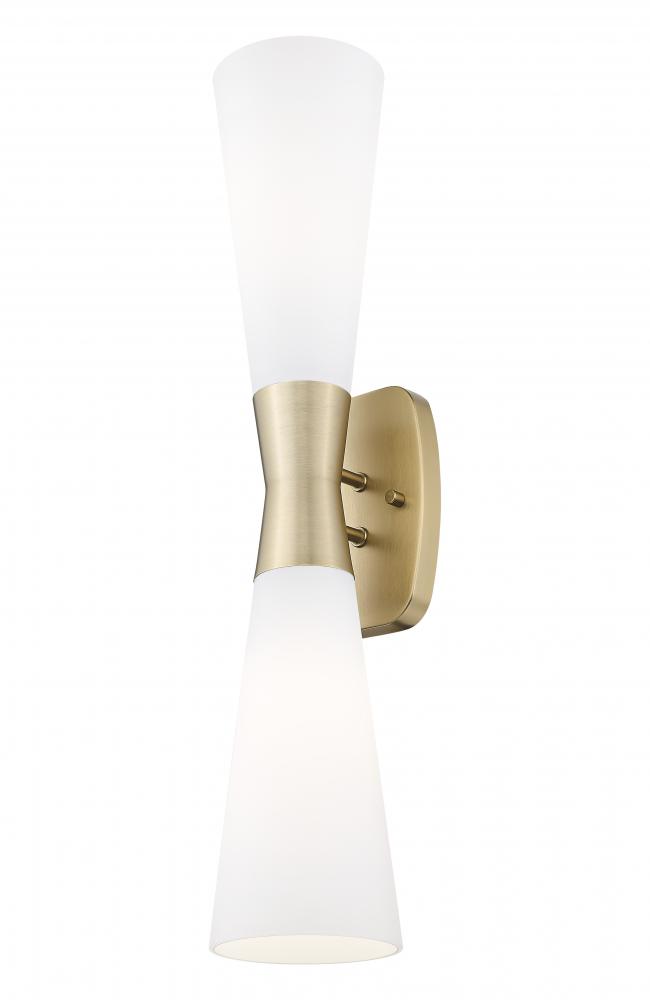 The shapely hourglass silhouette of the matte opal glass shade on the Emrys collection vanity fixtures is accented by a bold metal cuff in a finish choice of Brushed Nickel, Polished Nickel, Matte Black, and Modern Gold to complement most plumbing fittings