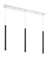 Clean and open, the modern silhouette of this three-light pendant light looks stunning in a dining room. Pearl black offers a rich and deep streamlined effect over the clean lines of the frame.