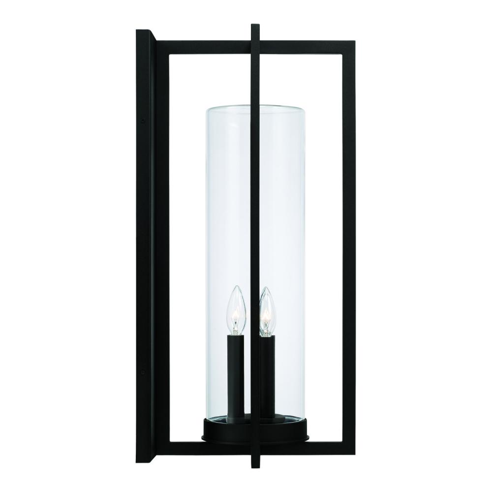 12"W x 25"H 3-Light Outdoor Wall Lantern in Black with Clear Glass Cylinder