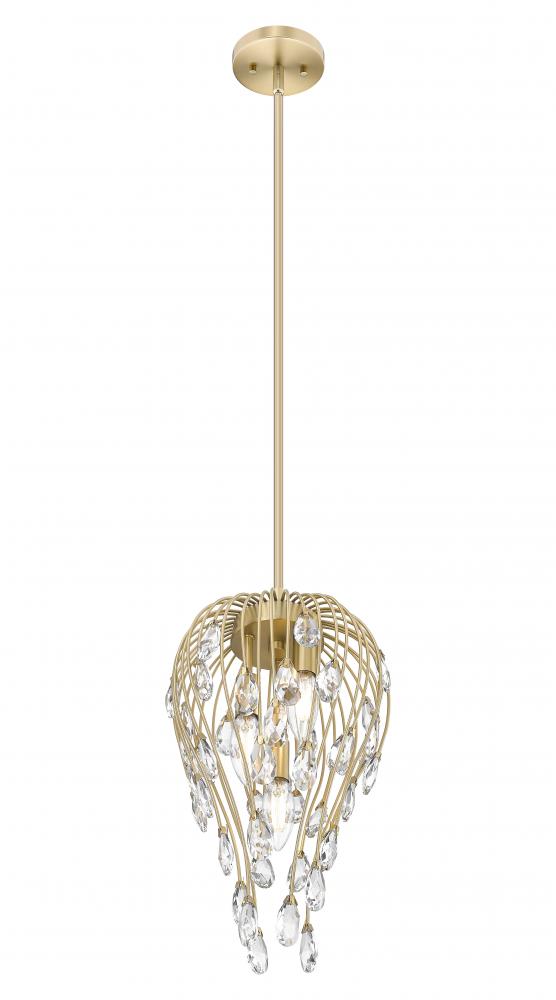 The Gabriella collection imbues a feminine, organic air with its free-flowing frame accented with crystal jewels. Offered in three pendant sizes as well as one wall-mount version, the fixtures are available in a choice of Brushed Nickel, Matte Black, and M