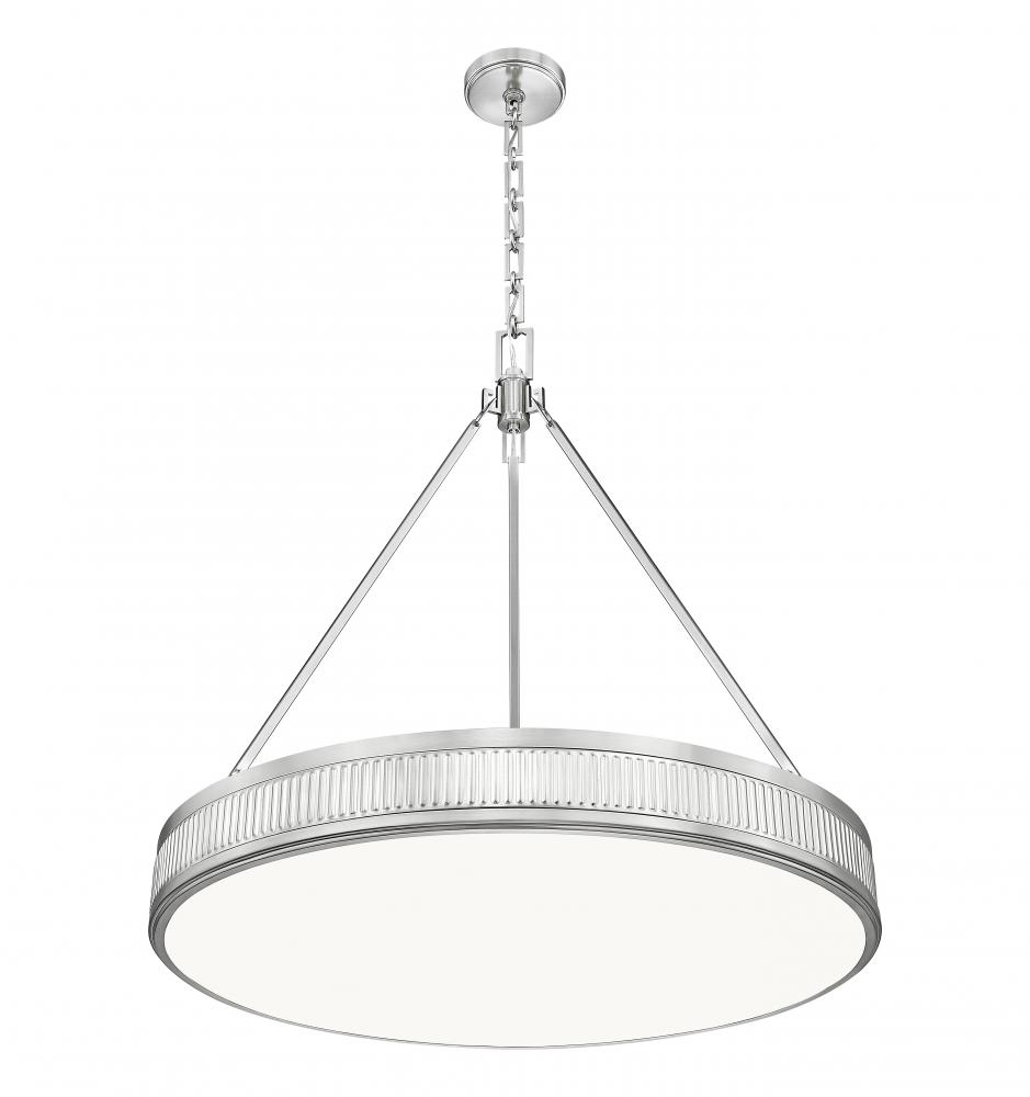 Elevate inviting decor with the mid-century charm of a modern three-light pendant from the Quinn collection. Equipped with a Z-Lite EZ change LED module, it features a shallow drum silhouette complete with fluted banding thats rich in texture and dimensionality. The pendant offers generous size, perfect for living and dining spaces, and includes light color selectability and dimming capabilities.