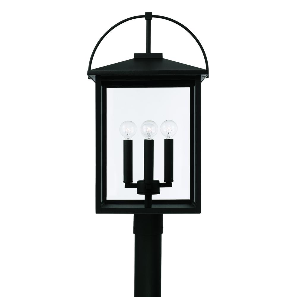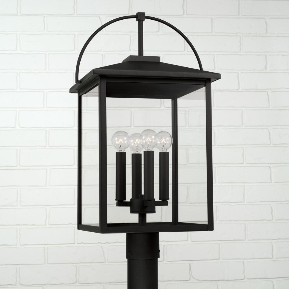 13.25"W x 24.75"H 4-Light Outdoor Post Lantern in Black with Clear Glass