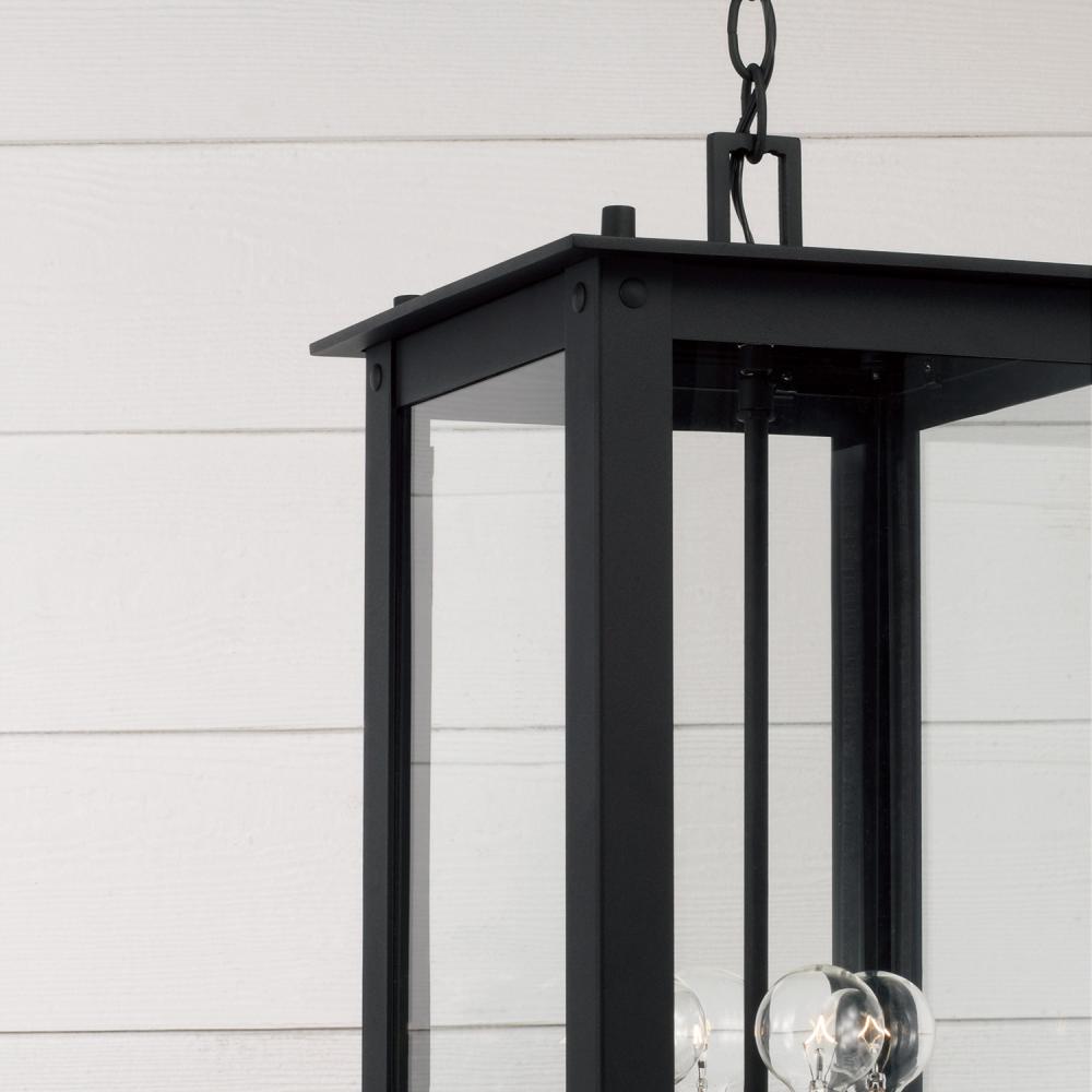 Clean and contemporary, the Hunt Hanging Lantern takes a modern approach to traditional style. The Black finish accents the striking frame and makes a statement in any outdoor space. Part of our Rain or Shine Collection and backed by our five-year warranty against rusting and fading.