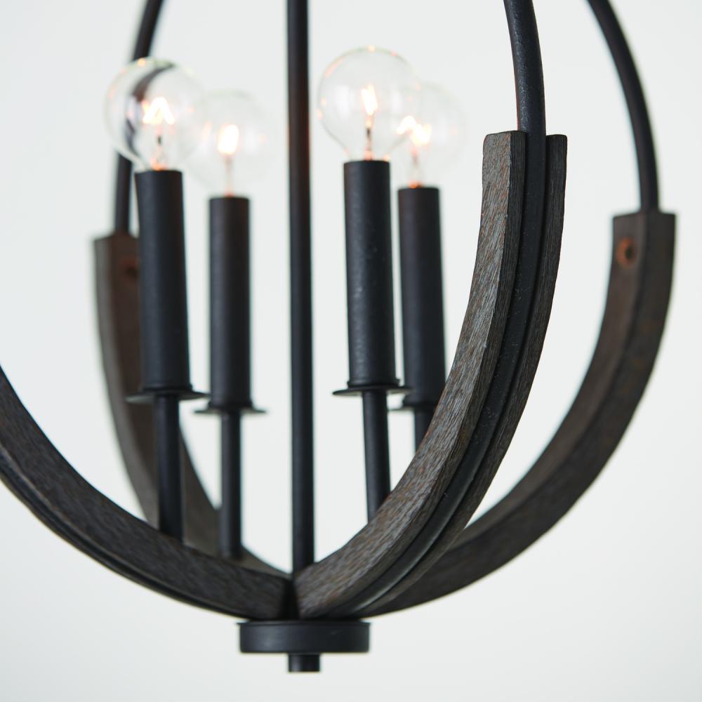 15.5"W x 20"H 4-Light Pendant in Carbon Grey and Black Iron with Handcrafted of Mango Wood