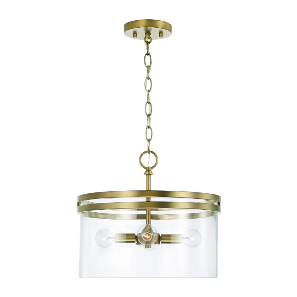 14.5"W x 12.75"H 4-Light Dual Mount Pendant or Semi-Flush in Aged Brass with Clear Glass