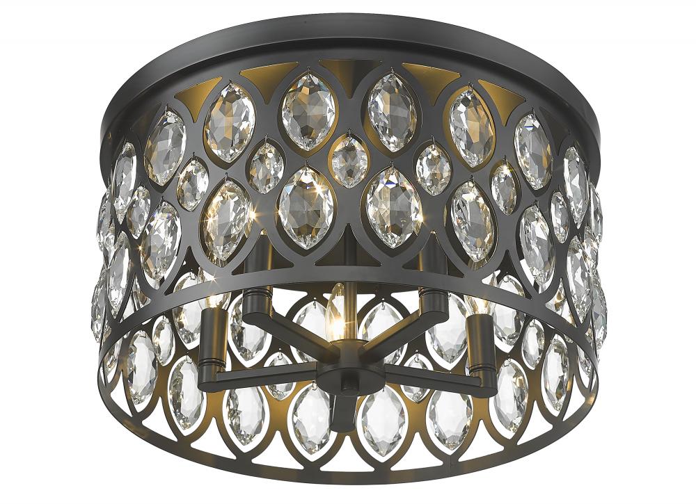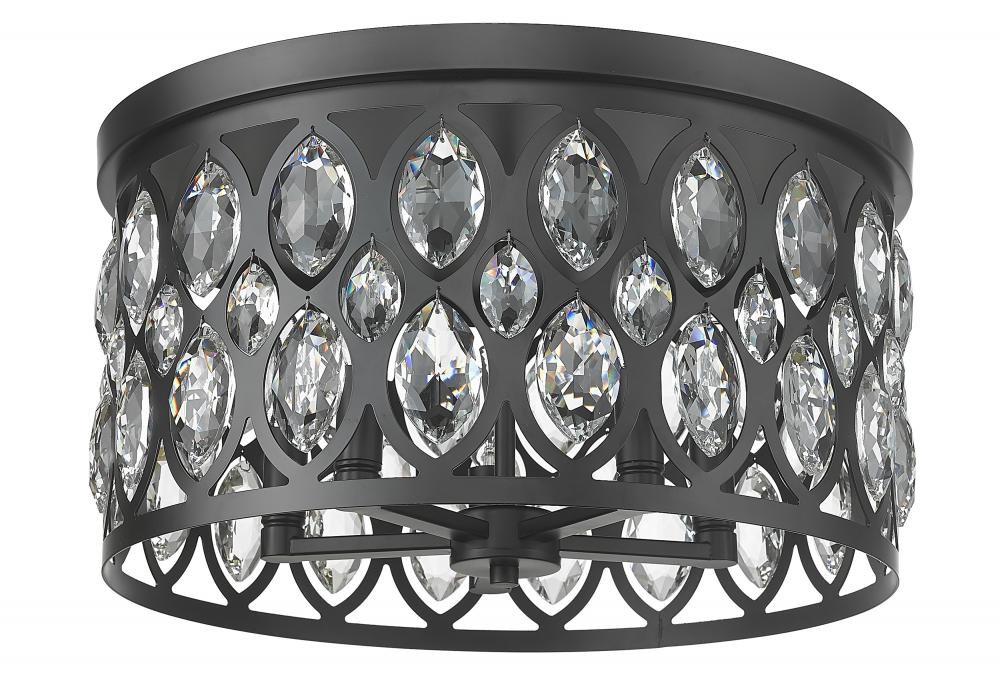 Choose a dramatic aesthetic infused with high-level glam as you light up a traditional space in style. An extraordinary selection from the Dealey collection, this chic five-light flush mount ceiling light is reserved for the most impactful of living spaces, adding the stunning look of crystal elements to an openwork metal frame with a smooth matte black finish. Five lights emit suitable ambient lighting for a kitchen, dining room, or foyer, capturing the palatial feel of a classic.