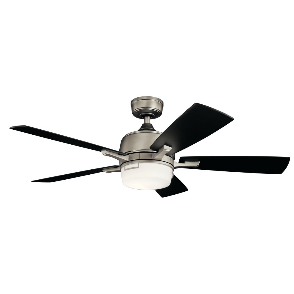 Constructed from steel, this 5 blade 52 inch Leeds™ LED ceiling fan pairs traditional form with updated detailing to create a unique composition. Showcased with a Brushed Nickel finish this design will deliver an elegant touch to any space.