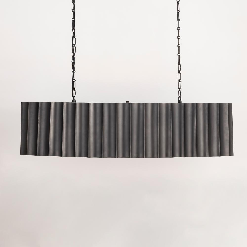 With graceful repetition and bold geometry, the Allegra collection strikes a balance between softness and structure. Scalloped metal drum shades form rhythmic silhouettes that feel both architectural and graceful. Offered in a range of pendant sizes, an AD