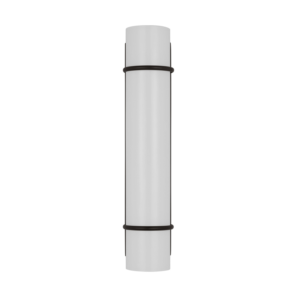 The Amelie Integrated LED vanity series by Chapman & Myers is a simplified cylindrical linear bath light with two metal rings inspired by a vintage cuff bracelet. Each sconce has a cylindrical glass shade accented by two metal rings on either end of the sconce and a metal back plate. Amelie is illuminated with custom-led panels to provide an even glow through the white glass shades. Available in three sizes and three finish options. Dimmable Integrated LED lamping with Damp location rating.