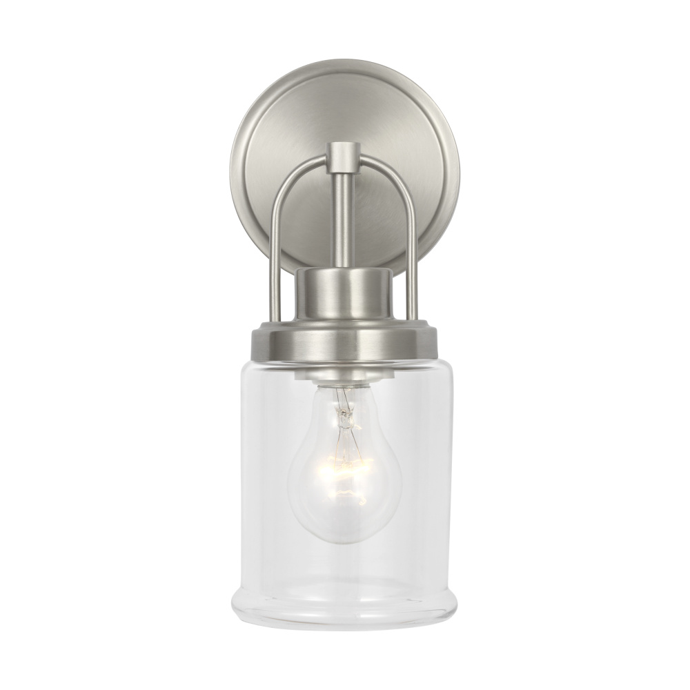 Crafted with Steel in a Brushed Nickel finish with clear glass shade