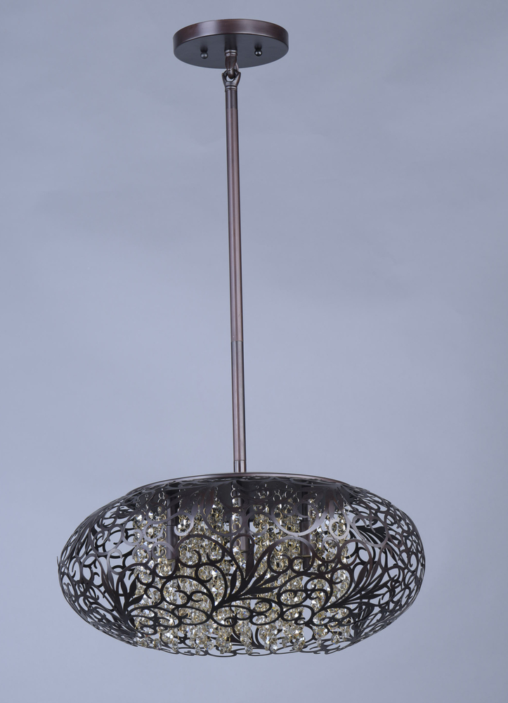 The Arabesque collection's intricate patterns are formed in metal and finished in Golden Silver. Strands of crystal beads add sparkle as they shimmer through the Xenon lamps. Unique oval-shaped pendants add a touch of class to any room.