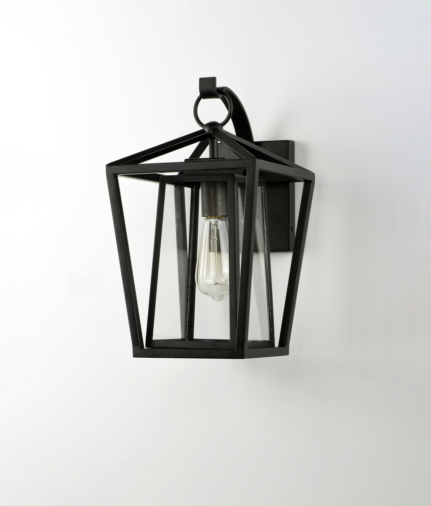 This frame inside a frame design is the perfect update to this classically inspired outdoor lantern. Durable stainless steel construction is finished in Black and supports an inner frame of Clear panels of glass for a crisp and clean appearance.