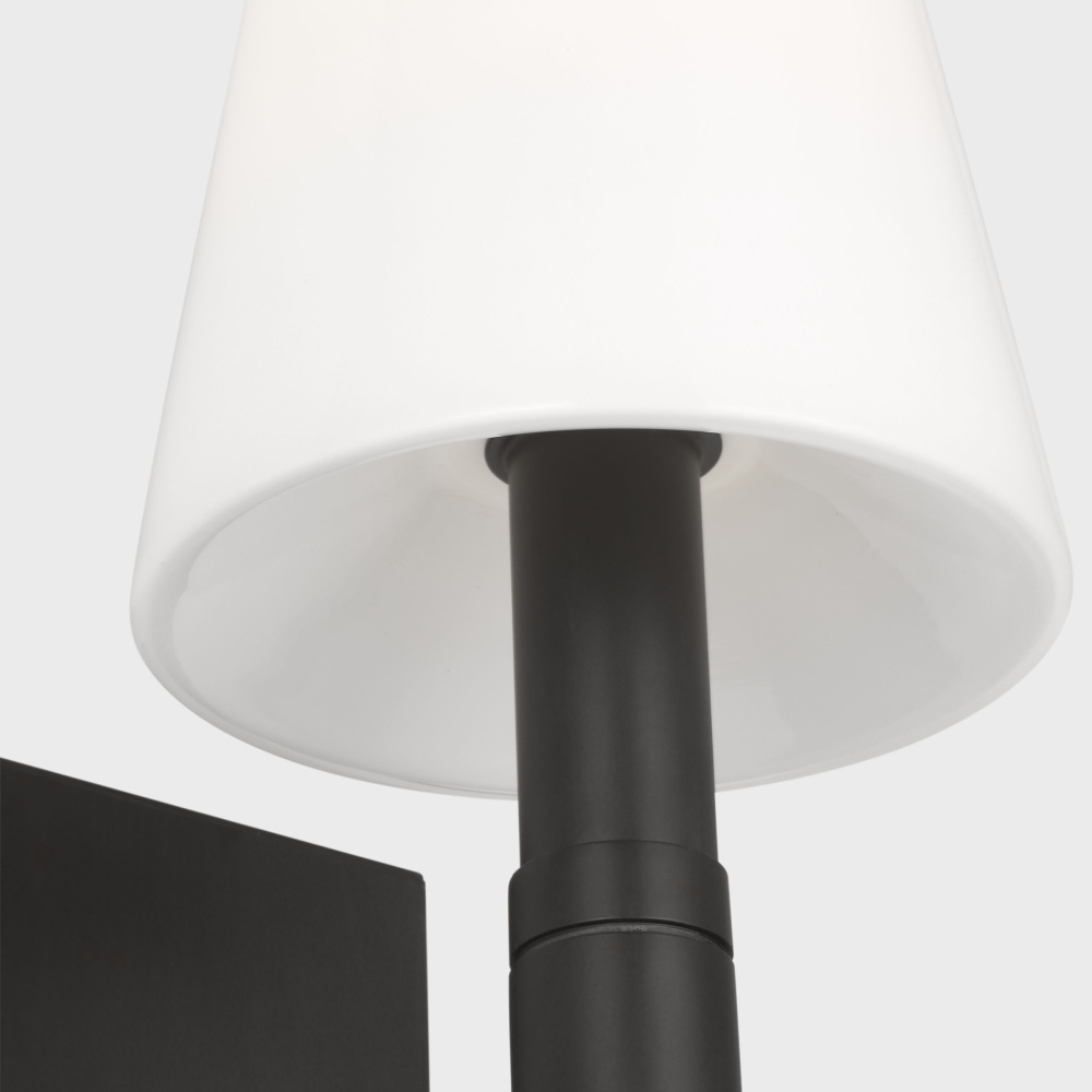 Crafted with Steel in a Aged Iron finish with milk glass shade