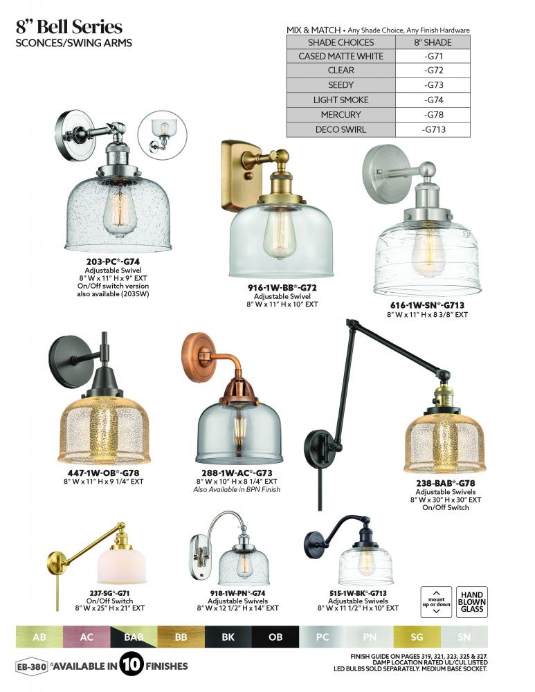 The Edison collection is comprised of heavy cast components that give the fixture a sturdy contemporary look. We offer the fixture in 11 finishes with a Bare Bulb look or with over 100 possible metal and glass shade options that can change the style to fit