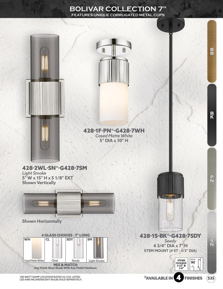 The stately Bolivar Collection is a study in architectural design and subtle details. The stylish and stately ribbed base houses a cylindrical glass shade.