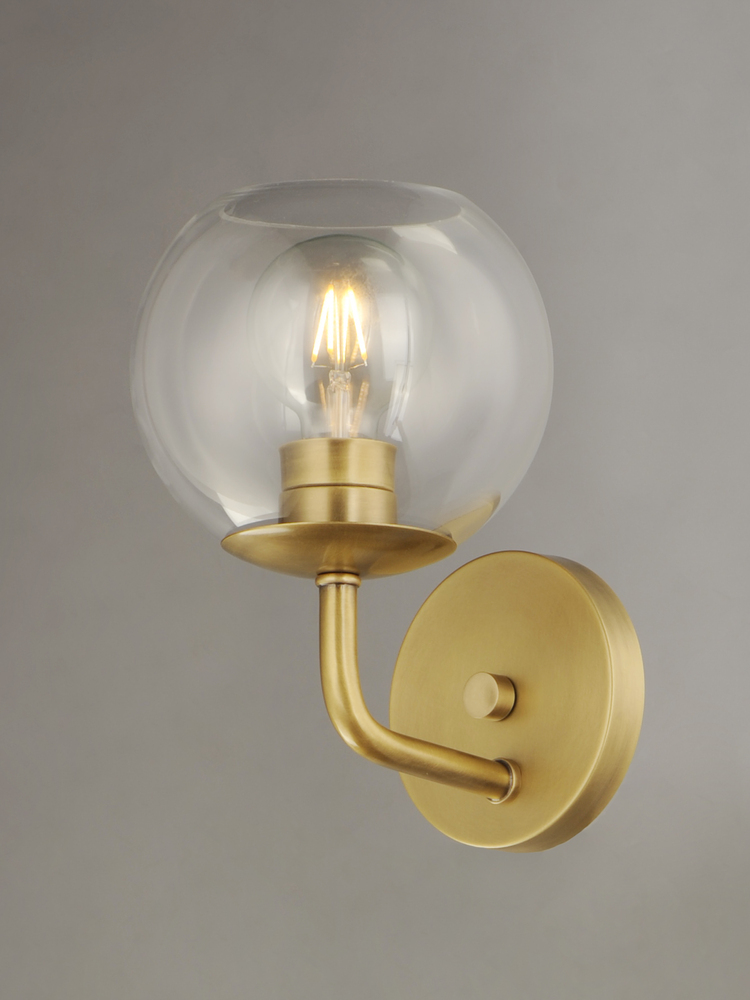 Vessels of heavy weight Clear glass are supported on frames of solid brass finished in a hand rubbed Natural Aged Brass finish. A versatile collection of up and down configurations which can be directly attached to the canopy or extended down by the rods s