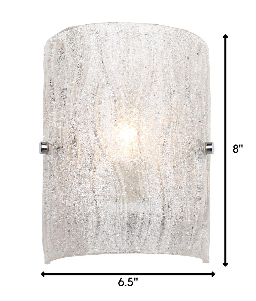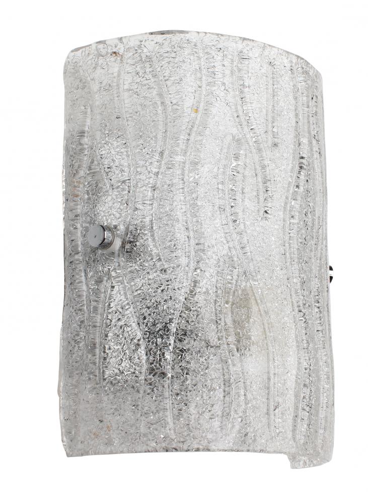 It's back! This popular design from Varaluz's past makes a modern and bright return. Named appropriately for its overall lighting effect, these fixtures marry crystally-cool ice glass, handmade Murano style with clear glass chips fused by heat on the back side, to clean and simple chromed metal work.