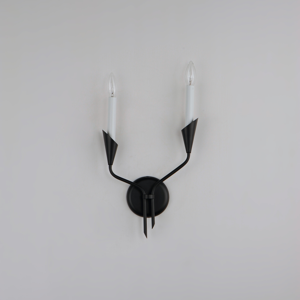 An arrangement that features Black tubing bouqueted at a point with biotic bobeches that contain elongated white candle covers. The organic form of this collection brings visual interest to the collector that is constructed of irregular stem lengths. The t