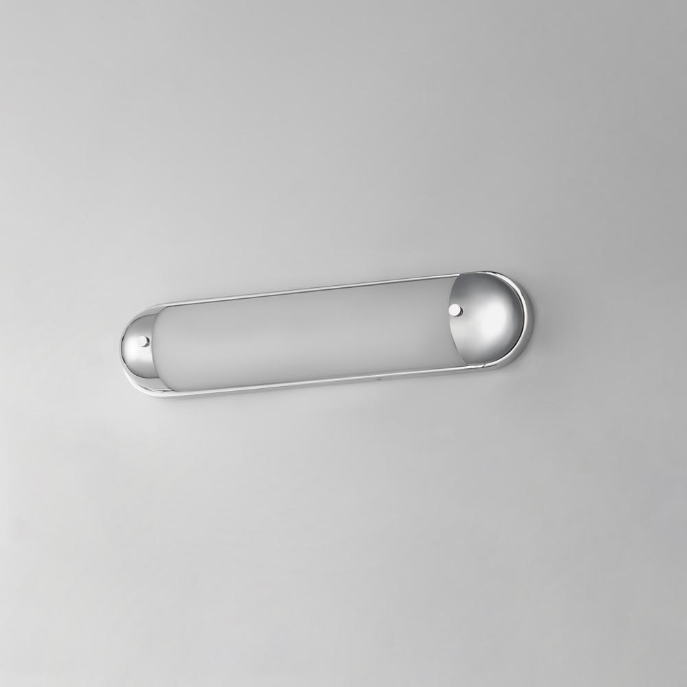 A convex curved glass is encapsulated at both ends to create an overall oval form. Available in a bold two-tone Black and Aged Brass finish or Polished Chrome, these wall sconces add sophistication to hallways and above bath vanities. The integrated LED te