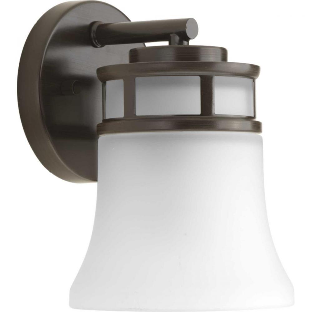Ideal for a bathroom, hallway, or foyer;Perfect for coastal, craftsman, modern, and modern craftsman style settings;Handsome antique bronze finish;Elegant etched glass shade;Mount the light fixture facing up or down;Use 1 medium base bulb that is sold sepa