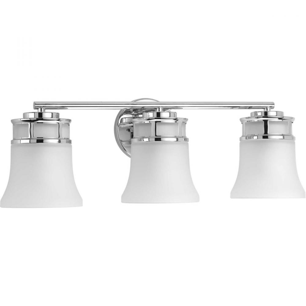 Ideal for a bathroom;Perfect for coastal, craftsman, modern, and modern craftsman style settings;Crisp polished chrome finish;Elegant etched glass shades;Mount the light fixture facing up or down;Use 3 medium base bulbs that are sold separately (100 W max