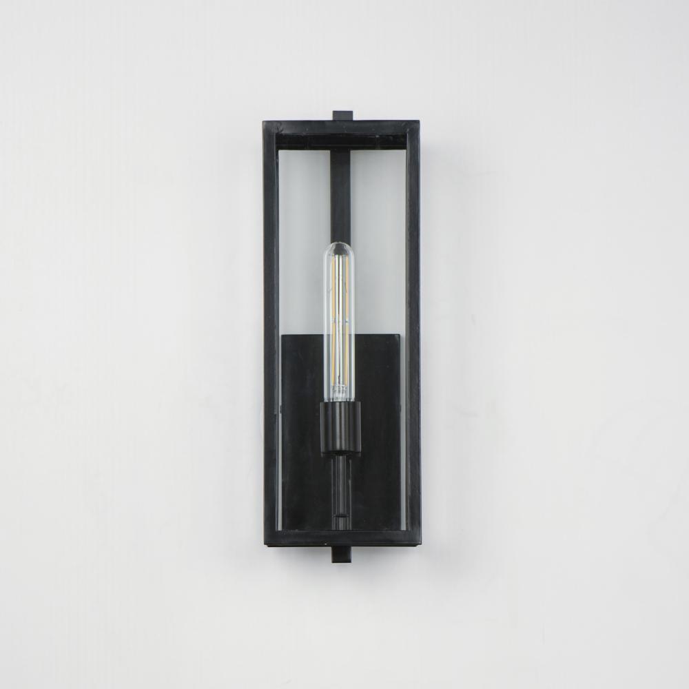 An elongated rectangular shaped design that is both minimalist and industrial. Die cast frames of Dark Bronze support Clear glass panels that provide an unobstructed view of the lantern's interior. Customize with your choice of lamps from vintage to tu