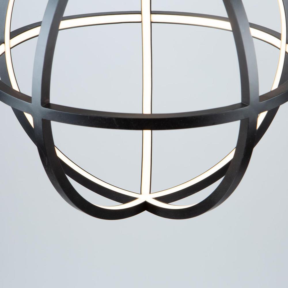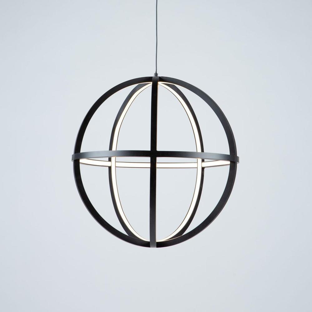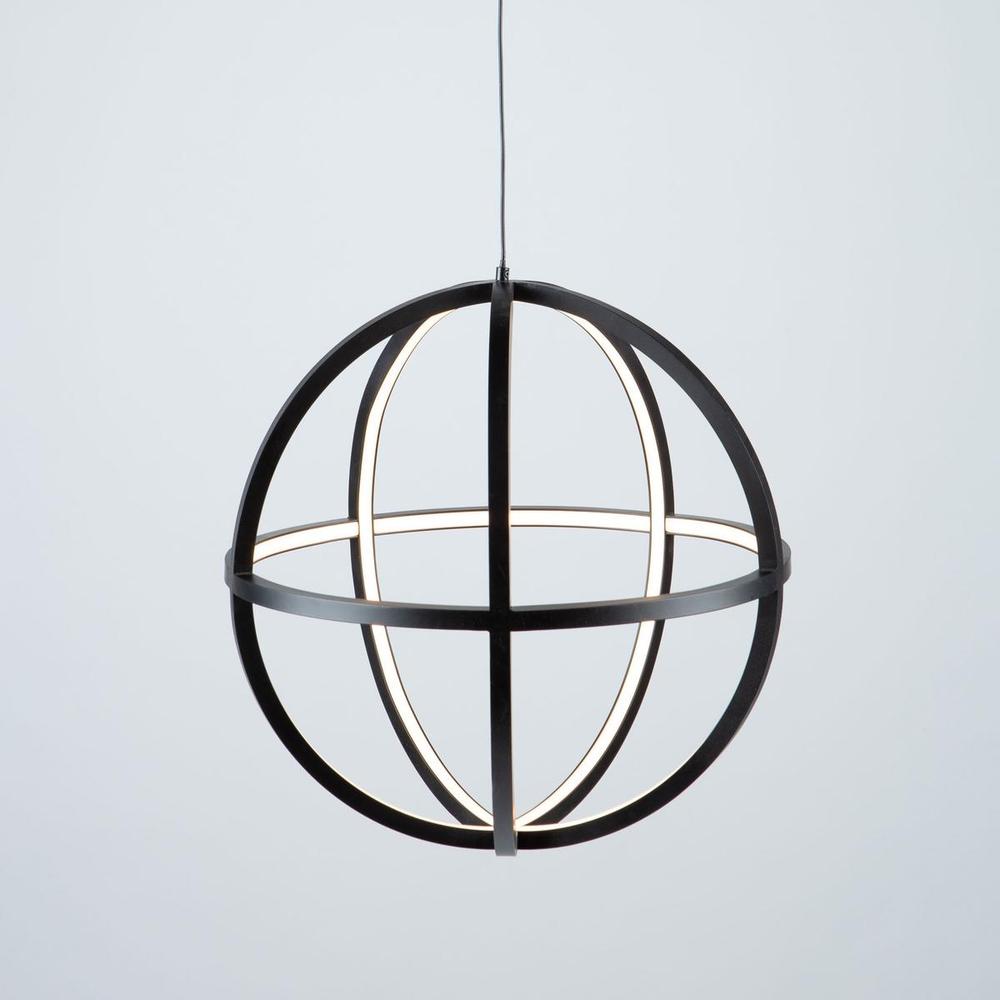 The "Celestial" collection orb is truly unique and stylish. The matte black finish on this double frame is eye catching. Illuminated by bright energy efficient integrated LED, this chandelier would fit in any surrounding, especially in transitional to contemporary settings. Larger 20" size also available.